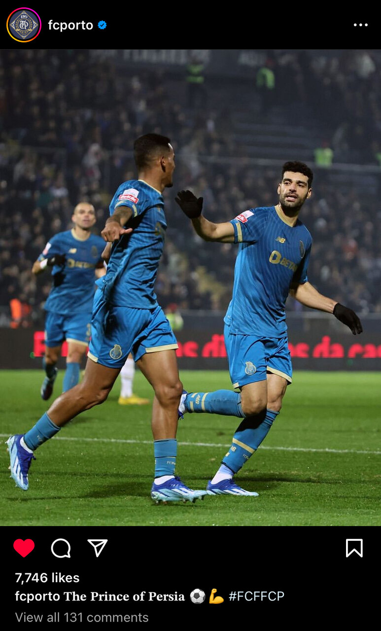 صفحه اینستاگرام باشگاه پورتو پس از عملکرد درخشان طارمی، یک پست ویژه برای ستاره ایرانی خود منتشر کرد و زیر آن با لقب «شاهزاده پارسی» از او تمجید کرد.