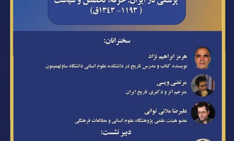 در این نشست، هرمز ابراهیمنژاد نویسنده کتاب و مدرس تاریخ در دانشکده علوم انسانی دانشگاه ساوت همپتون، مرتضی ویسی مترجم اثر و دکتری تاریخ ایران و علیرضا ملائی توانی عضو هیئت علمی پژوهشگاه علوم انسانی و مطالعات فرهنگی سخنرانی میکنند.