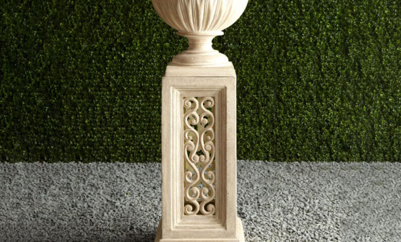پایههای سنگی زیر گلدانها یا مجسمهها، جلوهای کلاسیک و فاخر به فضای باغ و تراس میدهند. سنگ مرمر یا تراورتن تراشیده شده در ابعاد بلند، ارتفاعی متناسب برای گلدان بزرگ یا مجسمه ایجاد میکند و باعث میشود «حس عظمت» بیشتری به مکان اضافه شود. بر اساس توصیههای طراحان دکوراسیون: