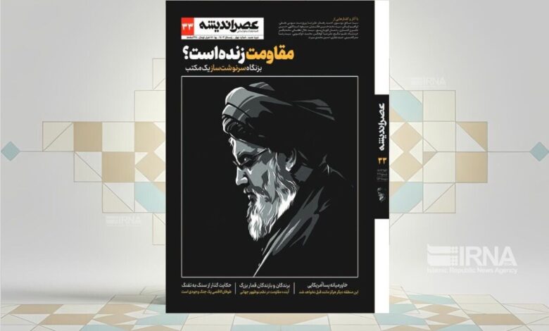 به گزارش خبرگزاری خبرآنلاین، سیوسومین شماره مجله فرهنگی و علوم انسانی «عصر اندیشه» با عنوان اصلی «مقاومت زنده است؟» با سرمقاله با عنوان «بزنگاه سرنوشتساز یک مکتب» نوشته روحالامین سعیدی منتشر شد. محمد مهدیدانی صاحب امتیاز و مدیرمسئول، روحالامین سعیدی سردبیر، سیدمرتضی مفیدنژاد دبیر تحریریه، سیداحمدی دستجردی مدیر داخلی، ابراهیم محسنآهویی معاون خارجی سردبیر و جعفر درونه رییس شورای مشاوران این مجله هستند.