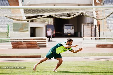 در حاشیه این تمرین هم حسن یزدانی کاپیتان تیم ملی کشتی آزاد درون دروازه ورزشگاه آزادی ایستاد و دروازه بانی کرد.